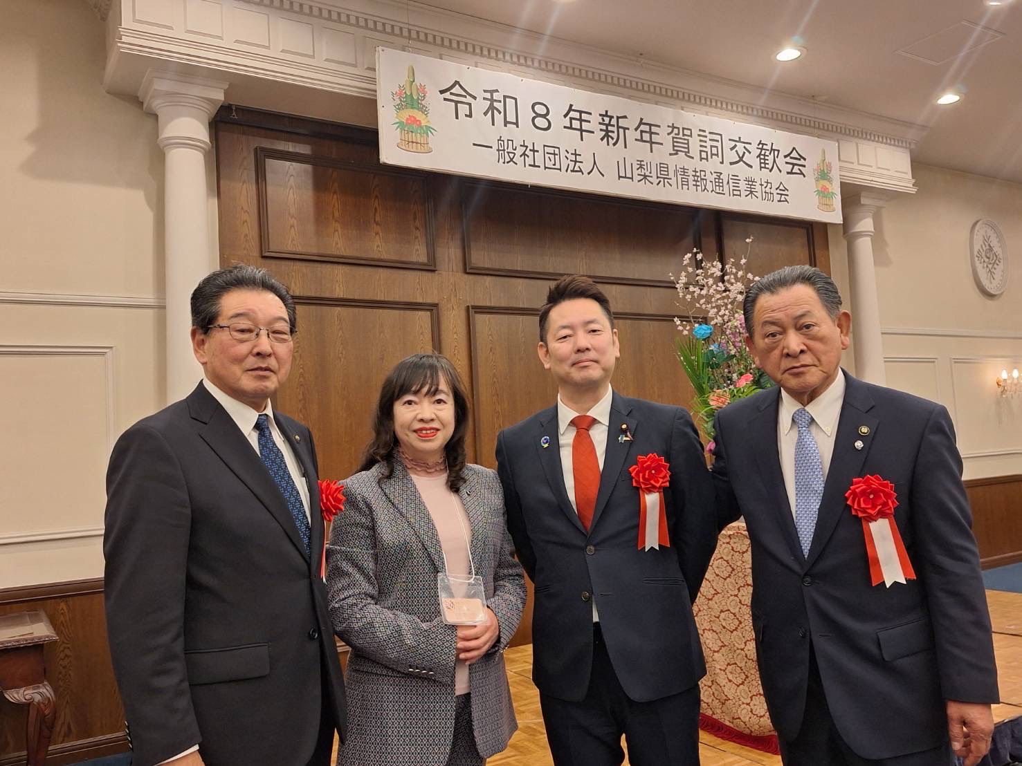 令和8年1月28日(水)、シャトレーゼホテル談露館にて開催された「一般社団法人 山梨県情報通信業協会 令和8年 新春講演会・賀詞交歓会」に、弊社代表・井上が理事・交流委員長として参加いたしました。新春講演会では、山梨県立博物館 学芸員 小畑茂雄様より「歴史と甲州商人に学ぶ」をテーマにご講演いただき、地域の歴史や価値観から多くの学びを得る機会となりました。賀詞交歓会では、業界・行政関係者の皆さまと交流を深めるとともに、弊社代表・井上が中締めの挨拶を務め、今後の連携と業界発展への想いを共有しました。記事を読む→